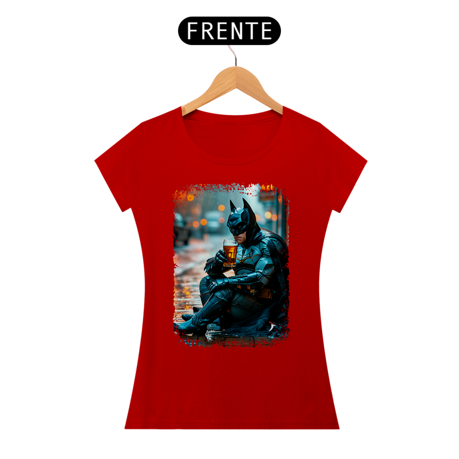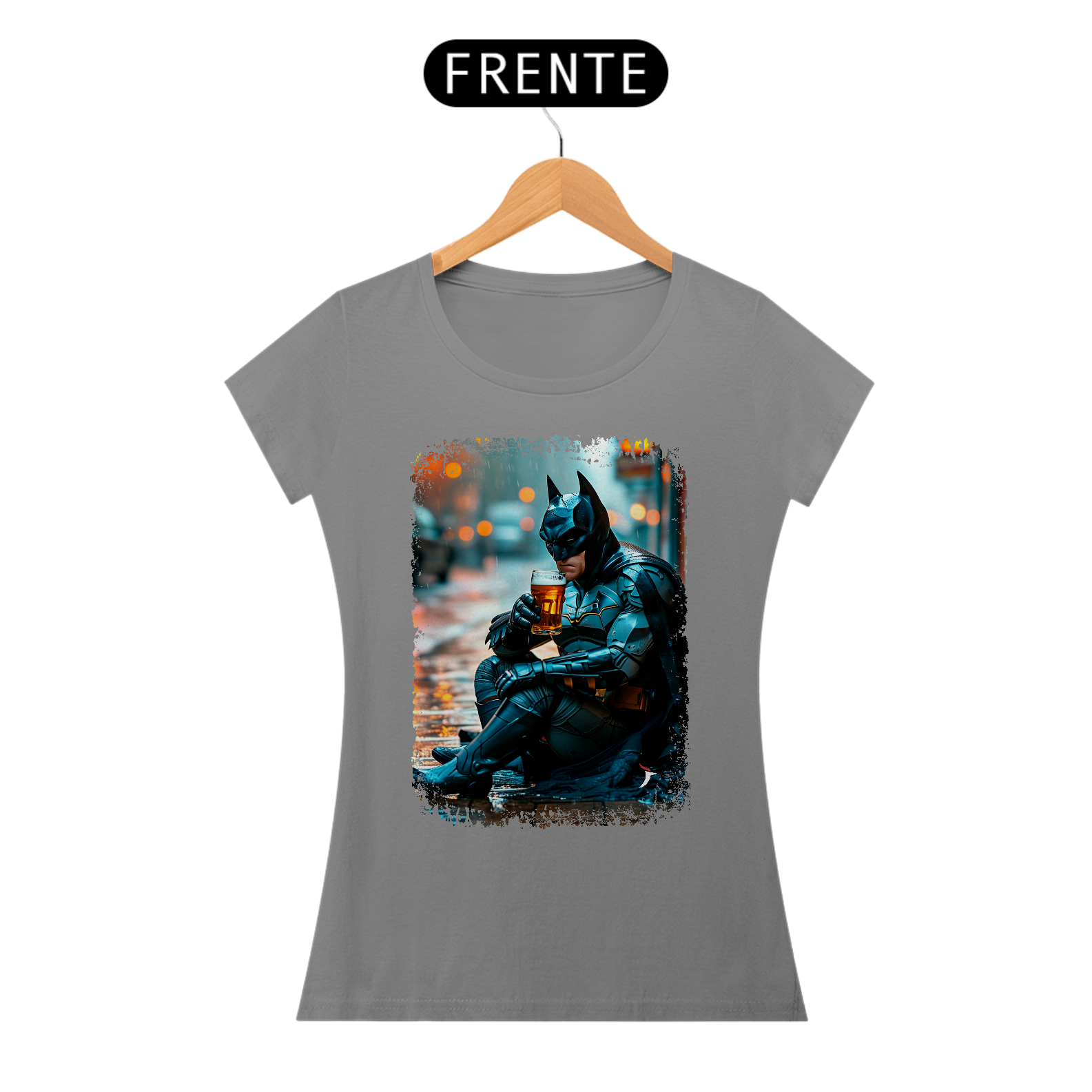 Camiseta Feminina Batman Bebendo Cerveja