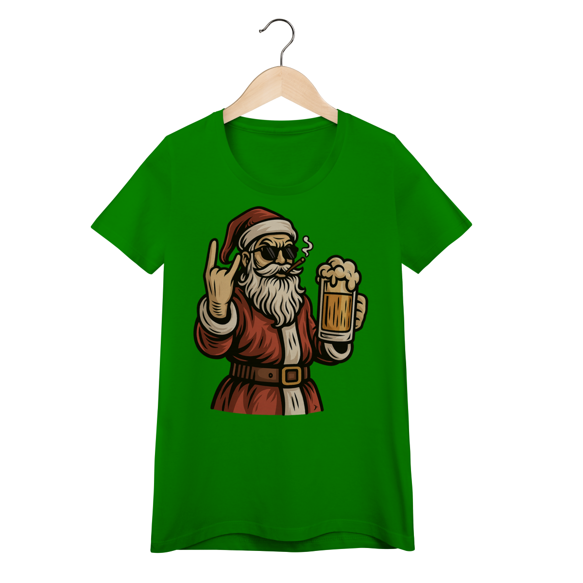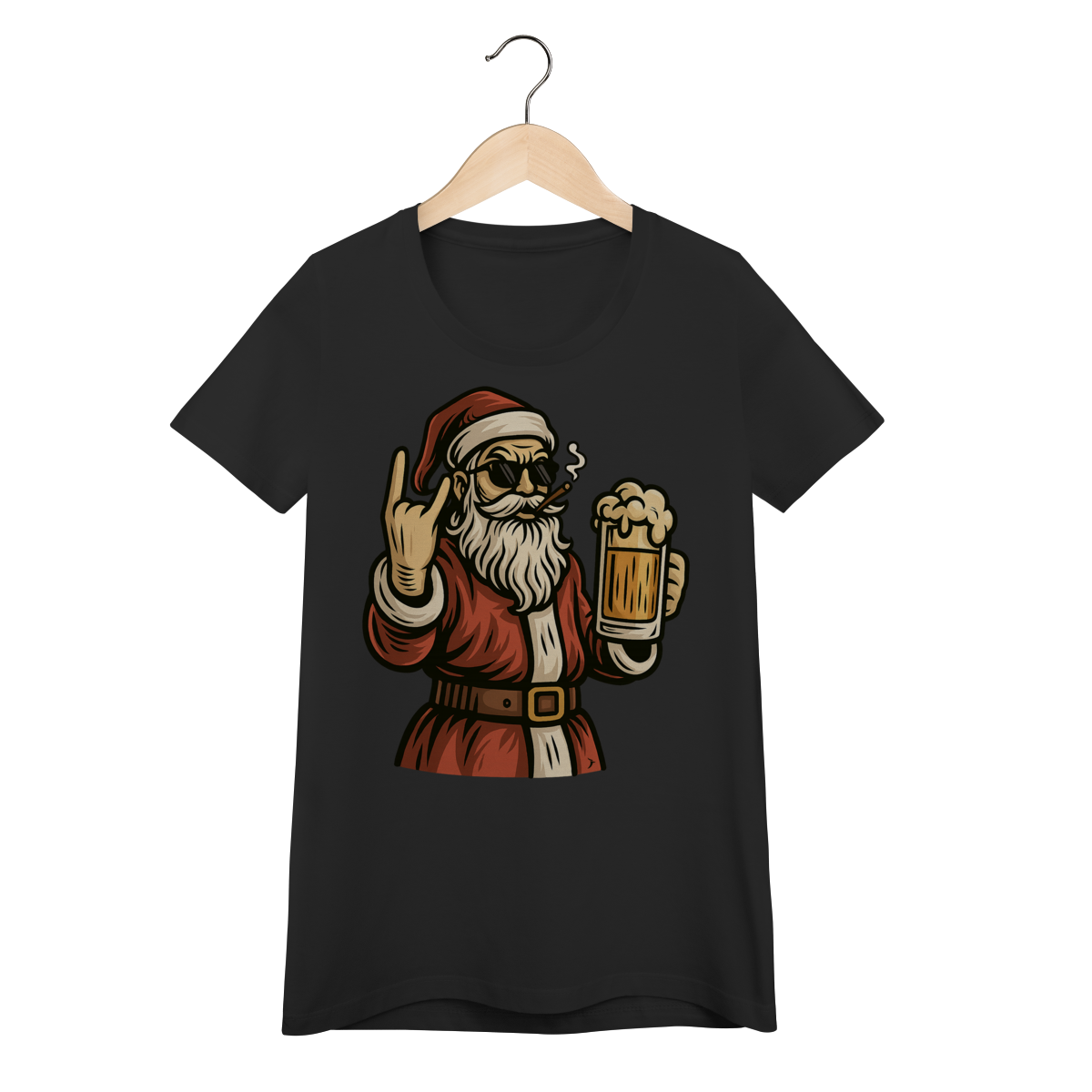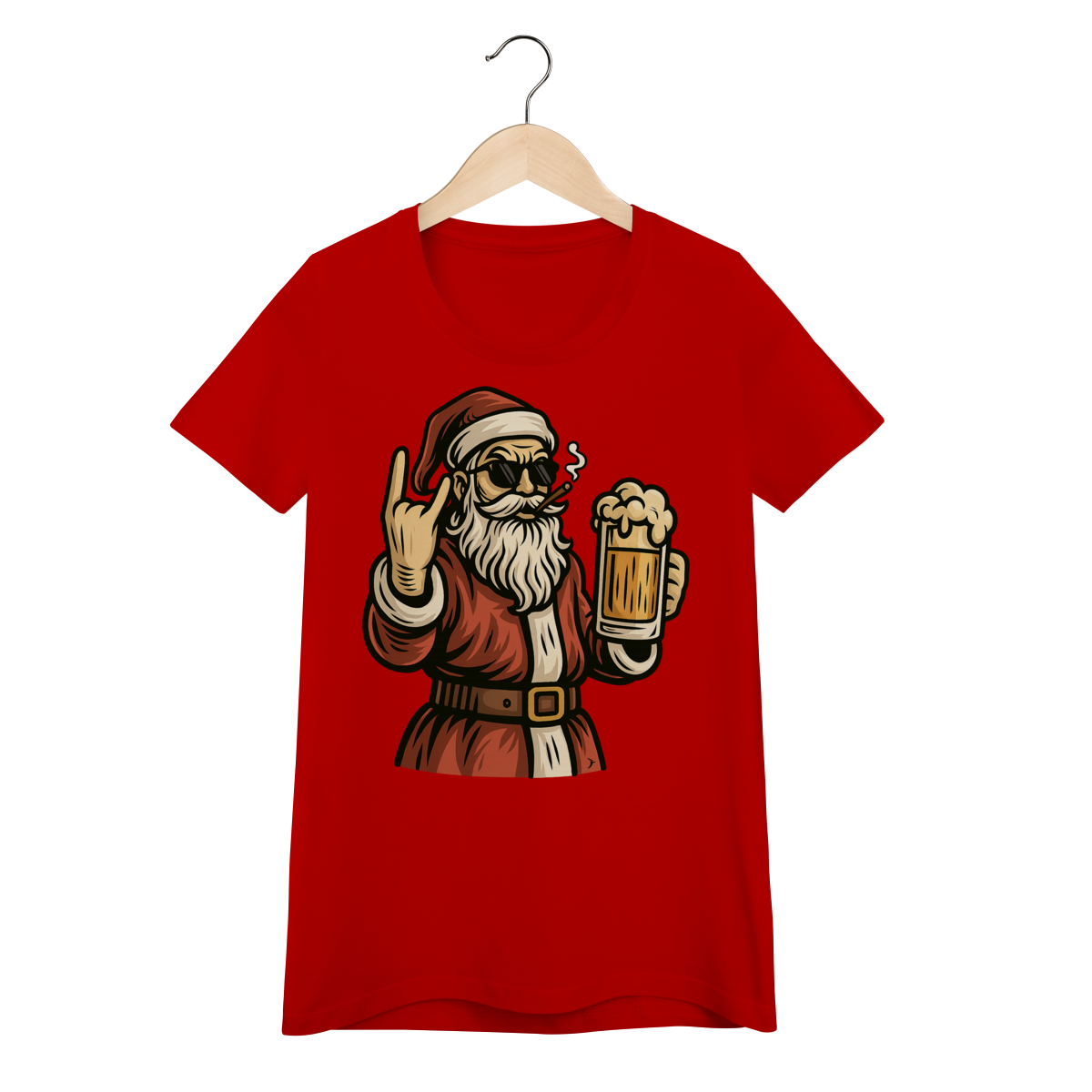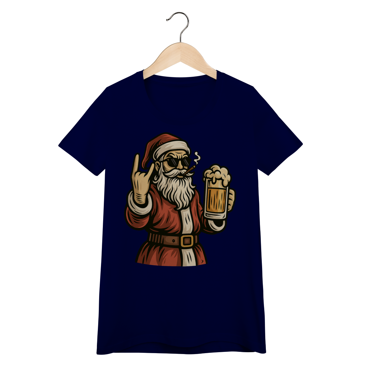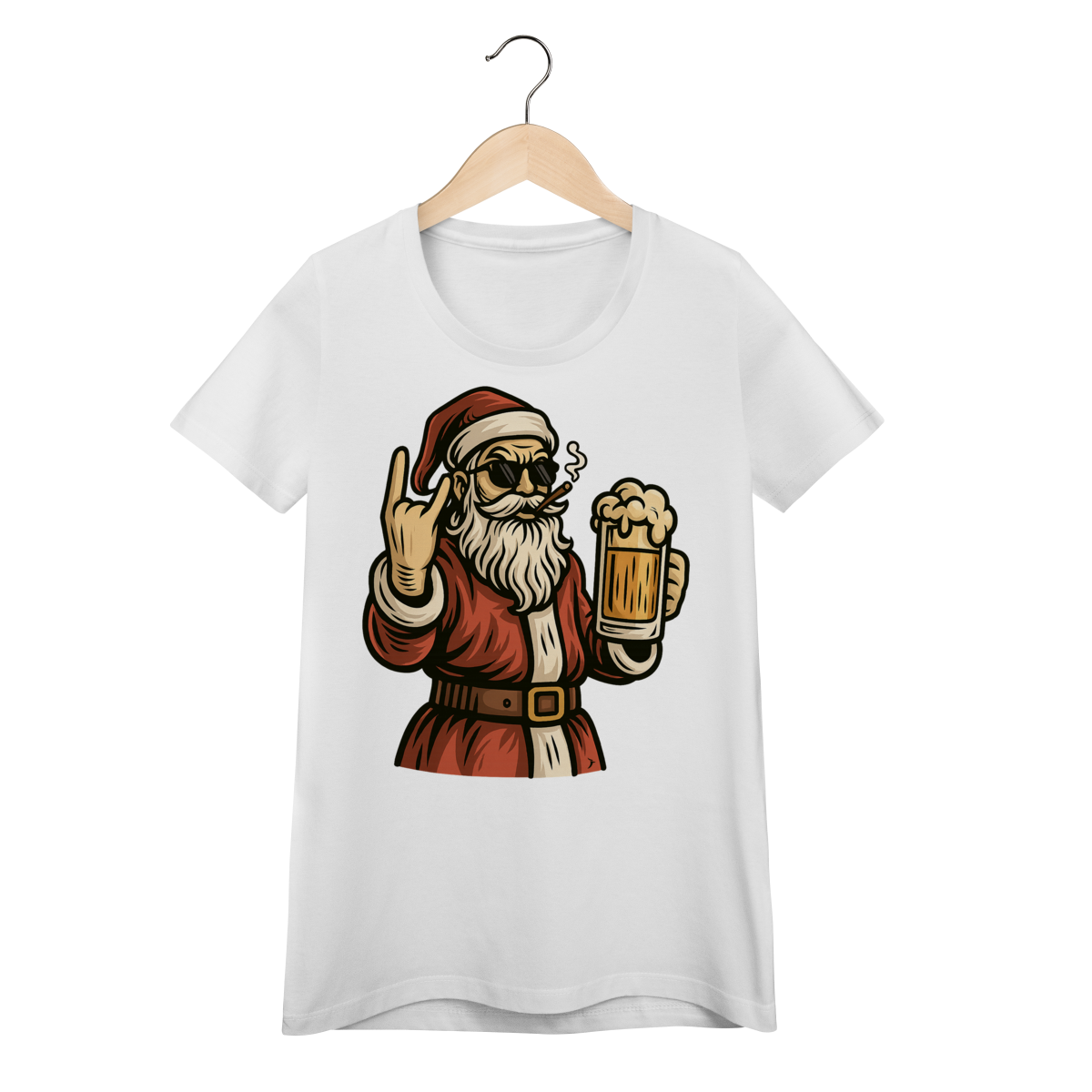 Camiseta Feminina Natal - Papai Noel Bebendo Cerveja