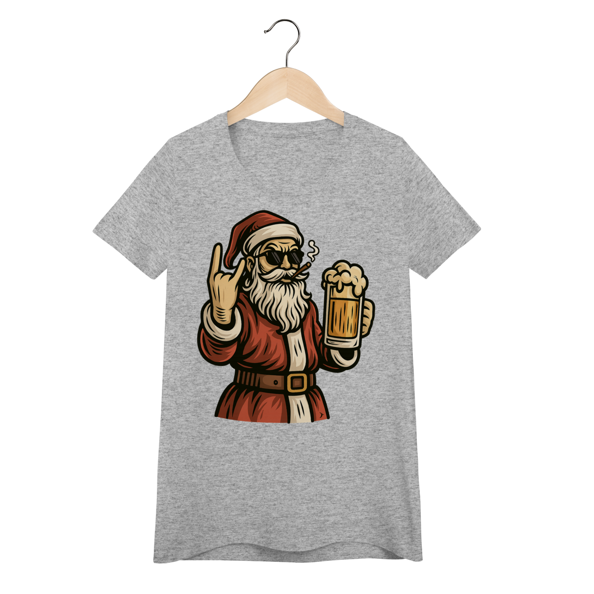 Estampa com o Papai Noel bebendo cerveja.