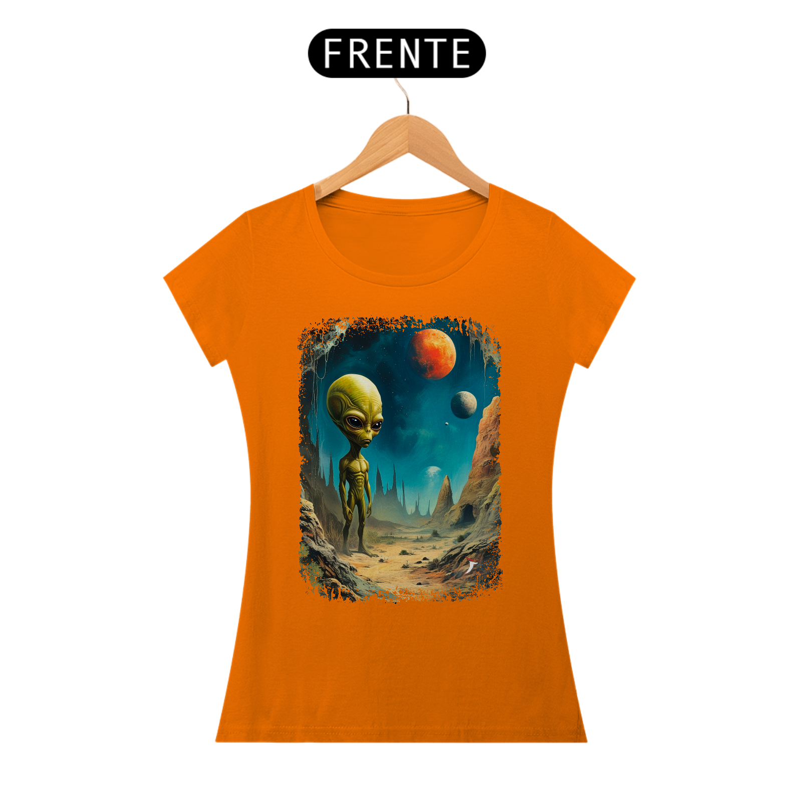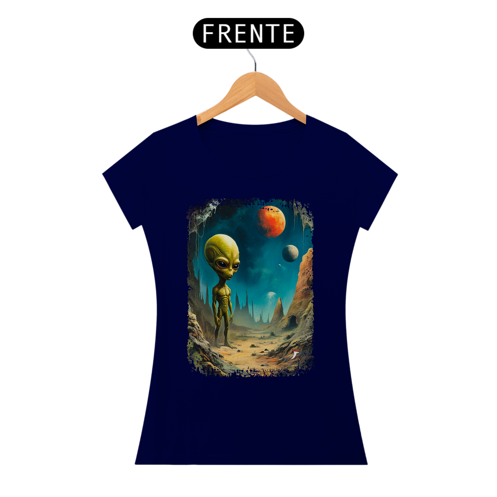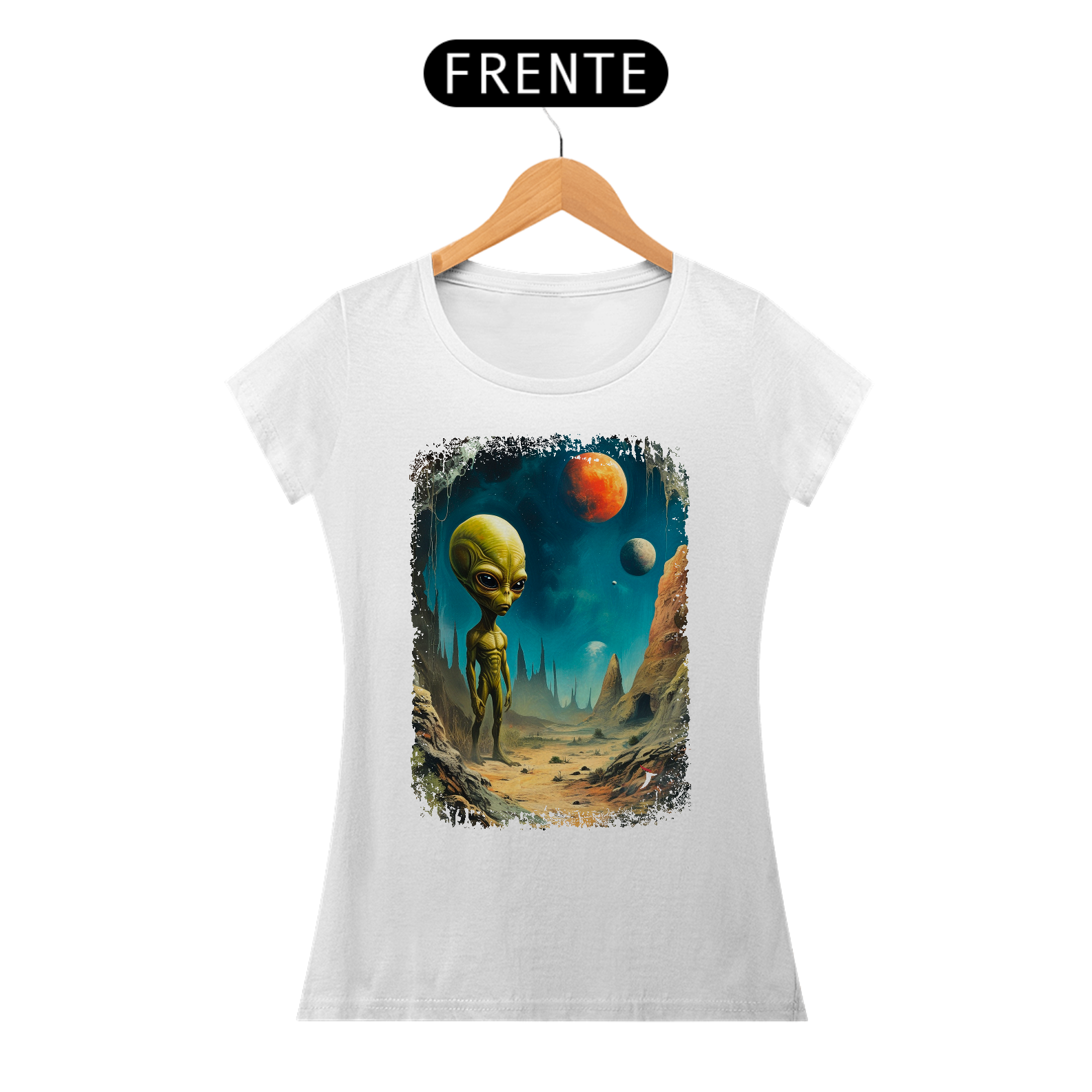 Linda estampa com um alienígena em algum planeta distante da Terra.