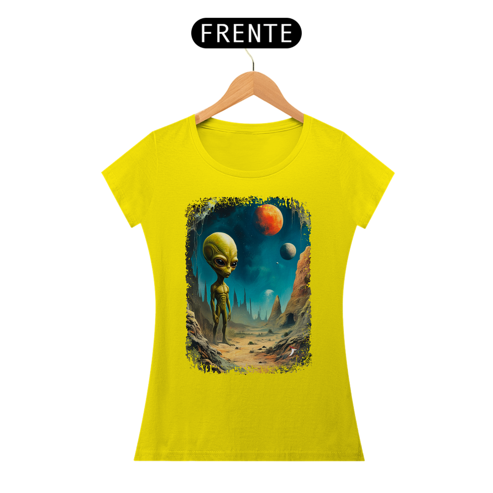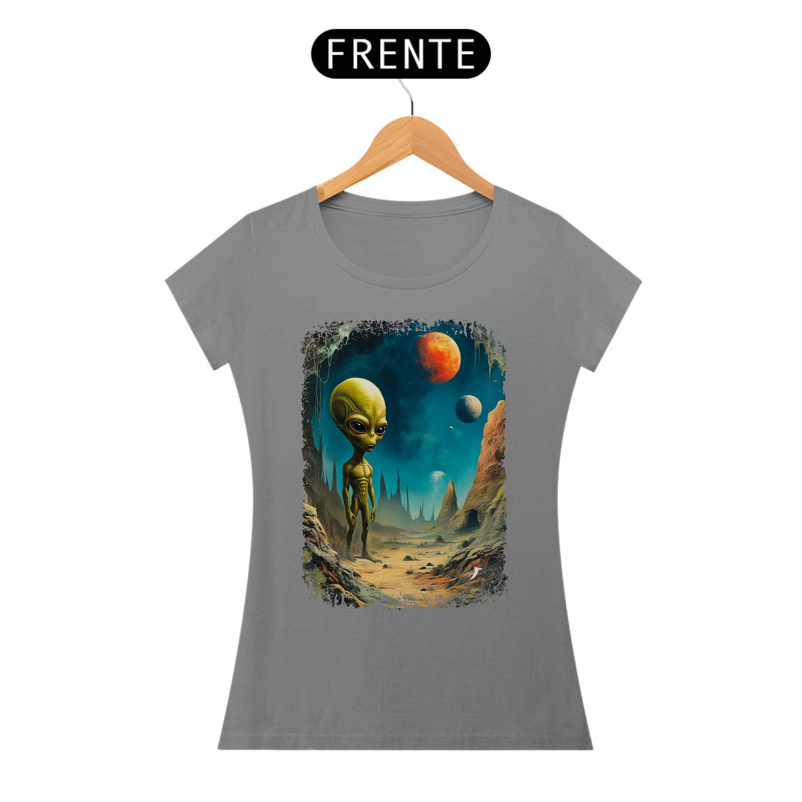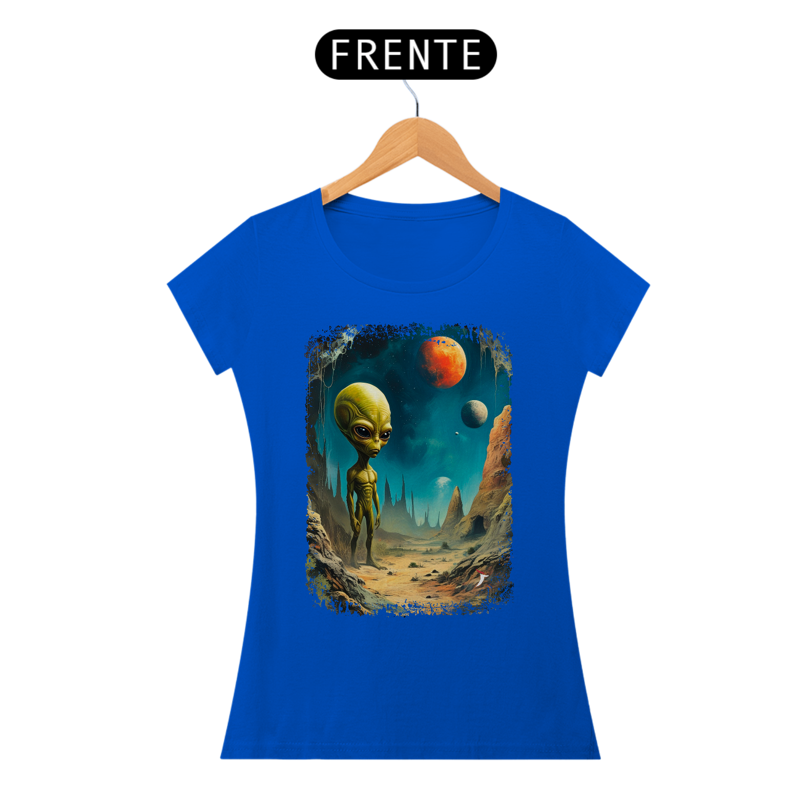 Linda estampa com um alienígena em algum planeta distante da Terra.