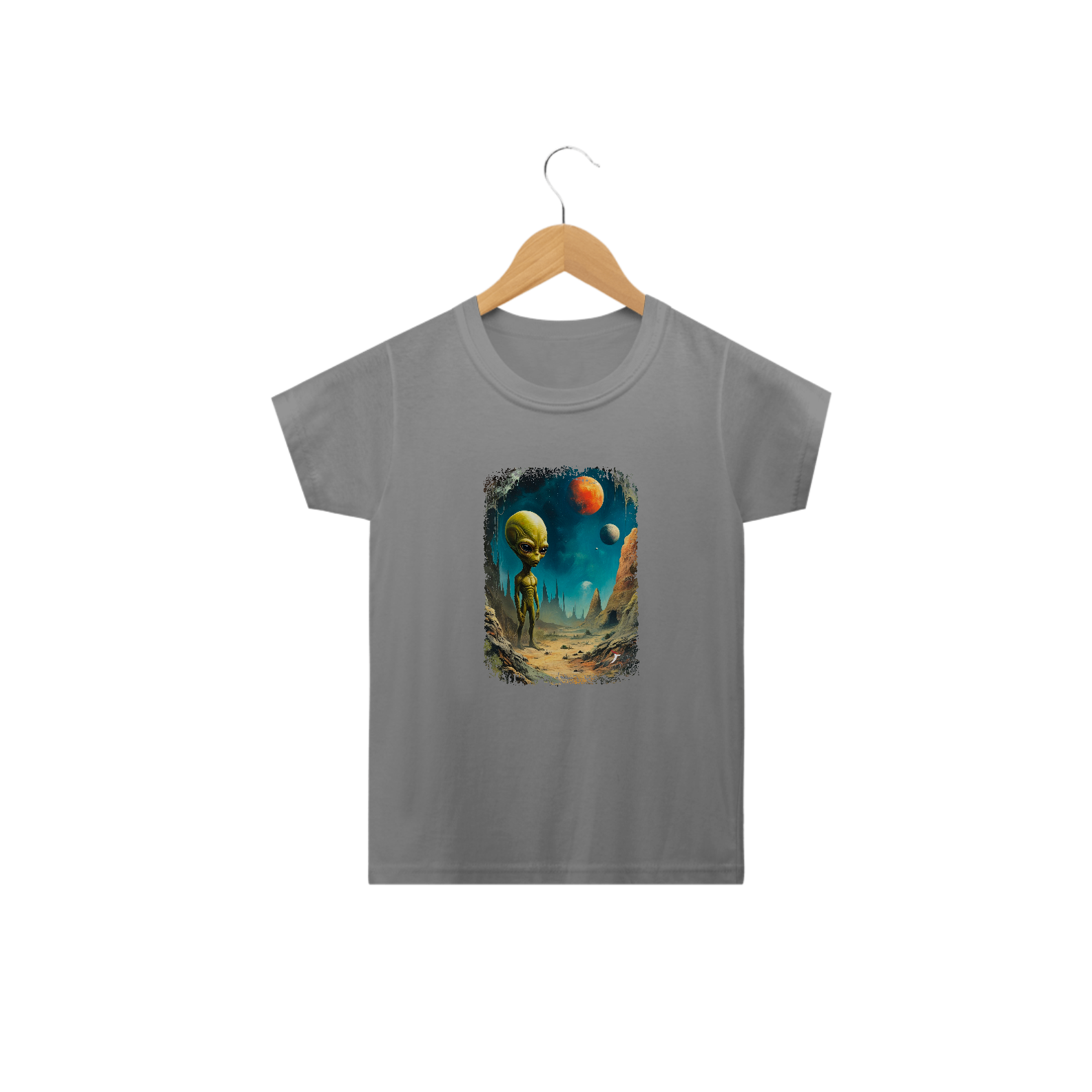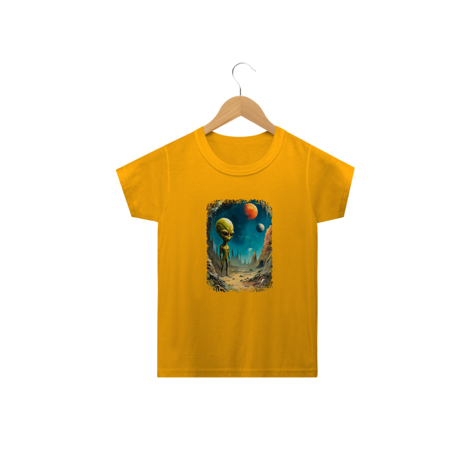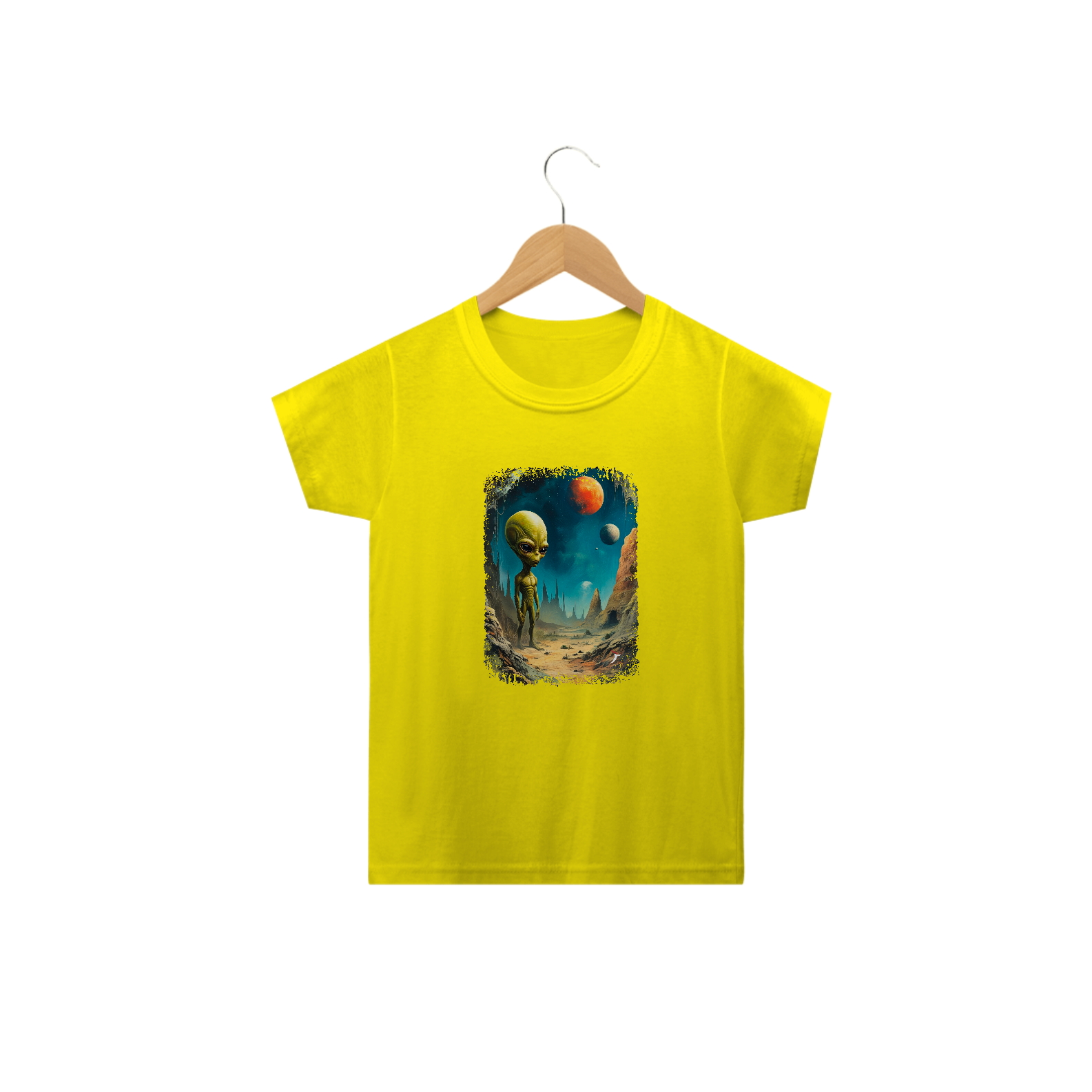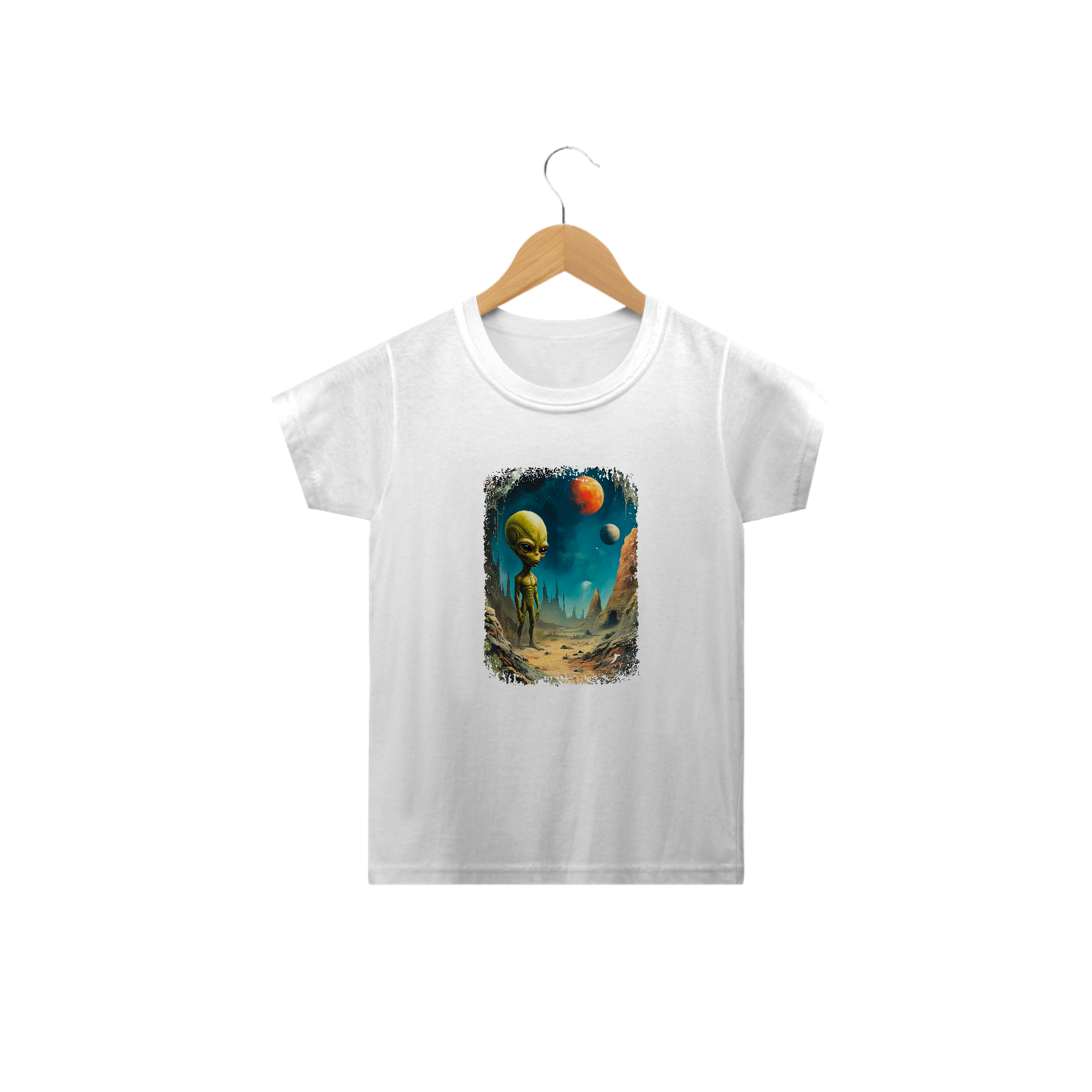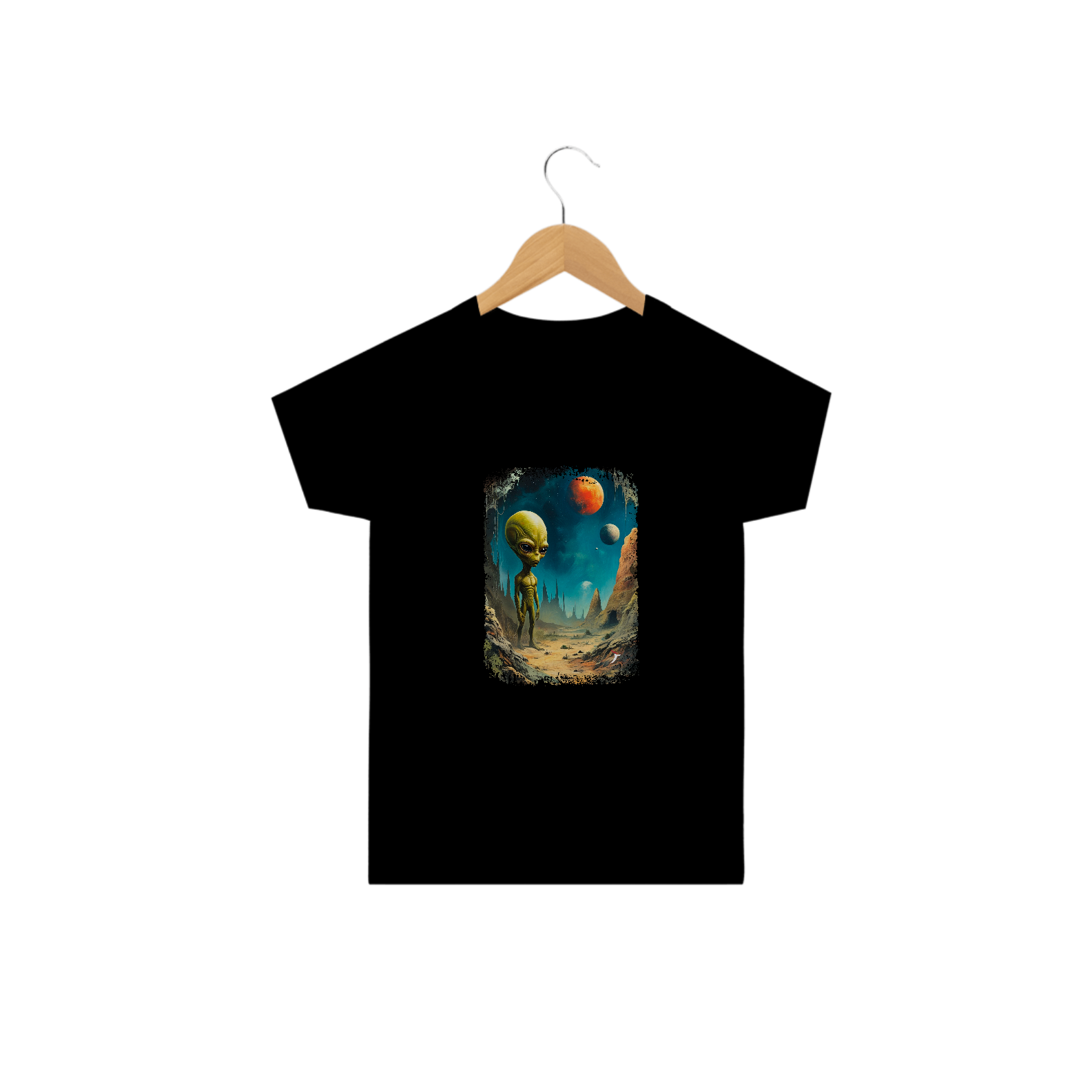 Linda estampa com um alienígena em algum planeta distante da Terra.