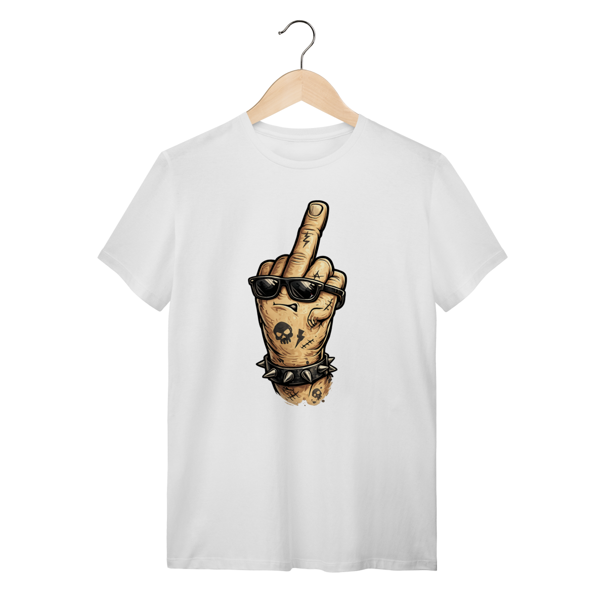 O design impactante — com mão tatuada, símbolos de caos e acessórios agressivos — representa liberdade, inconformismo e personalidade. Não é apenas uma camiseta, é um posicionamento.