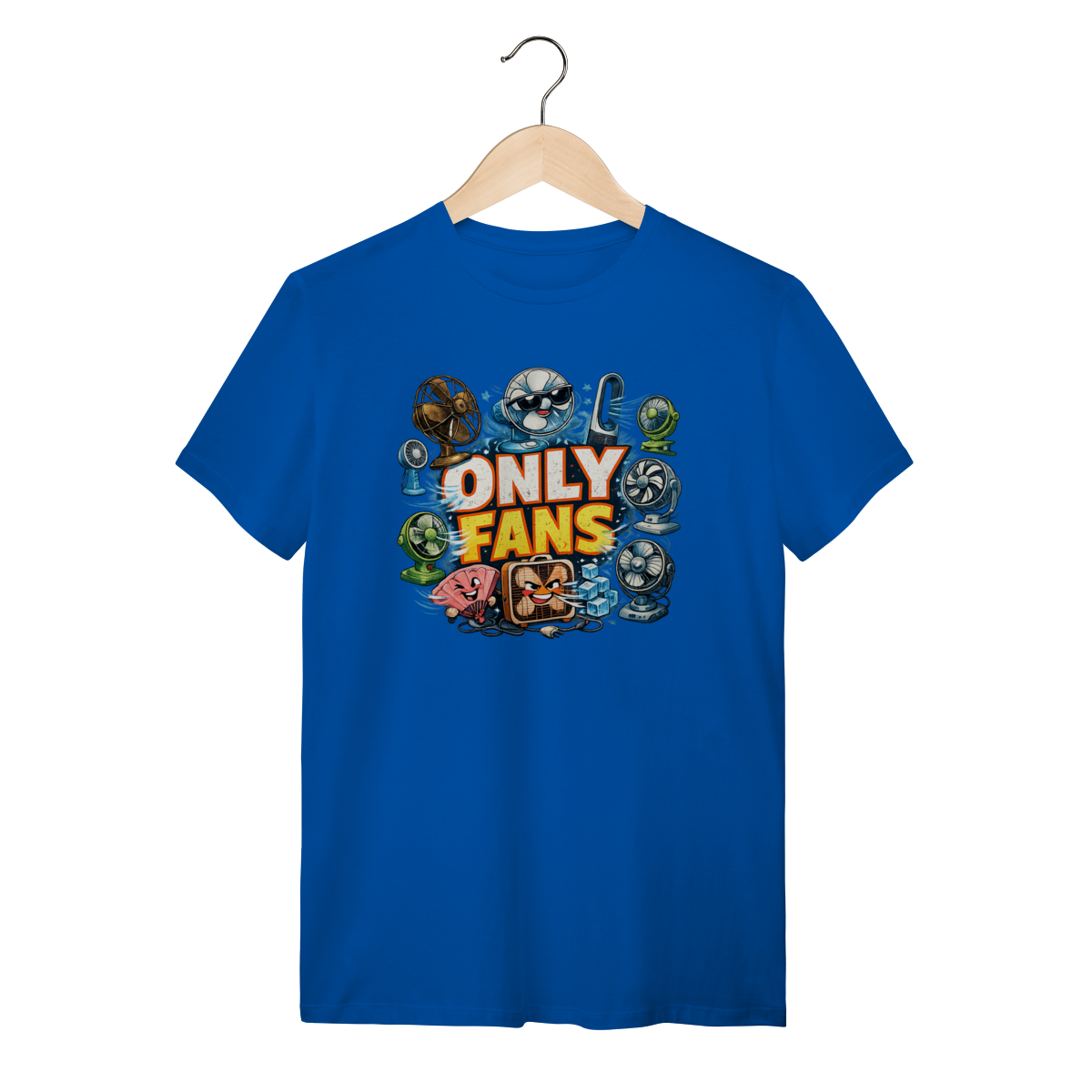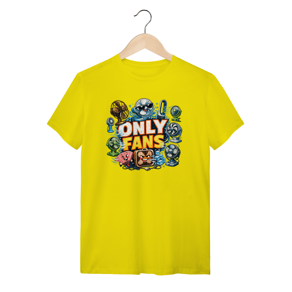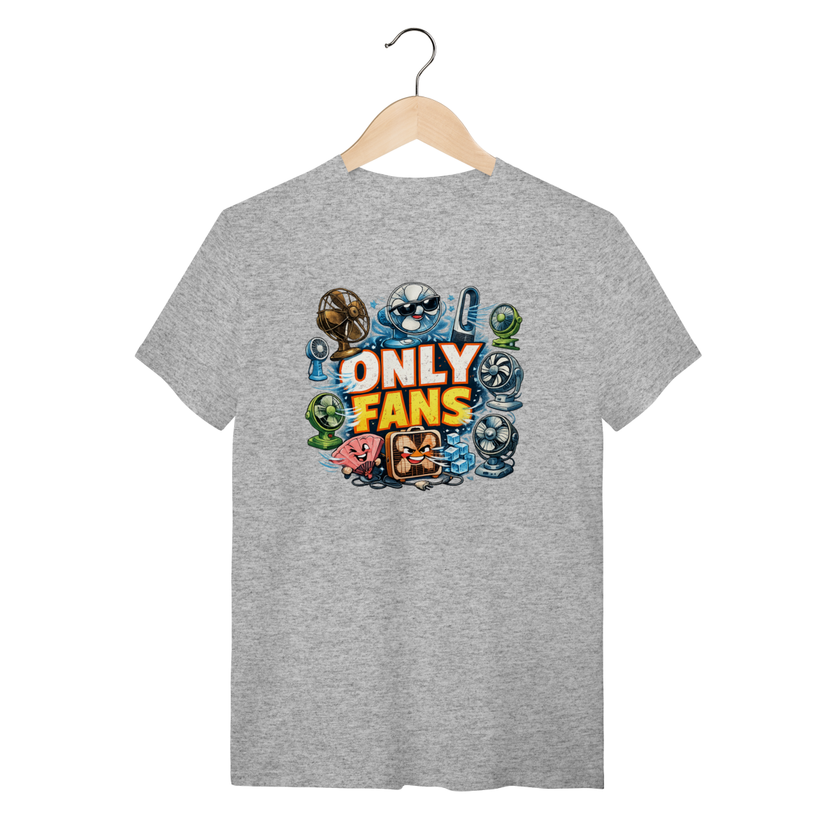 A arte traz vários tipos de ventiladores em um visual vibrante e cheio de personalidade, ideal pra arrancar risadas e chamar atenção por onde você passar.