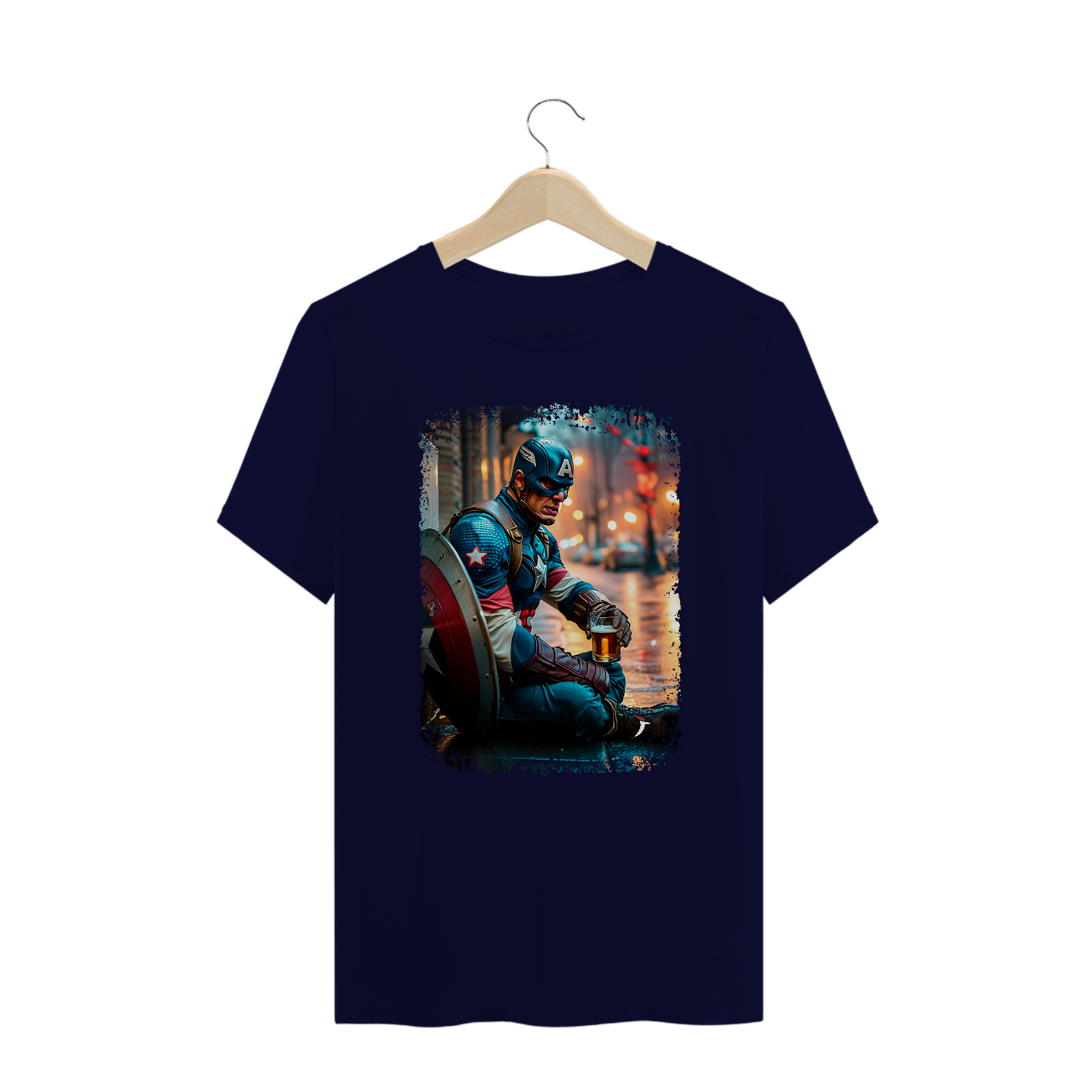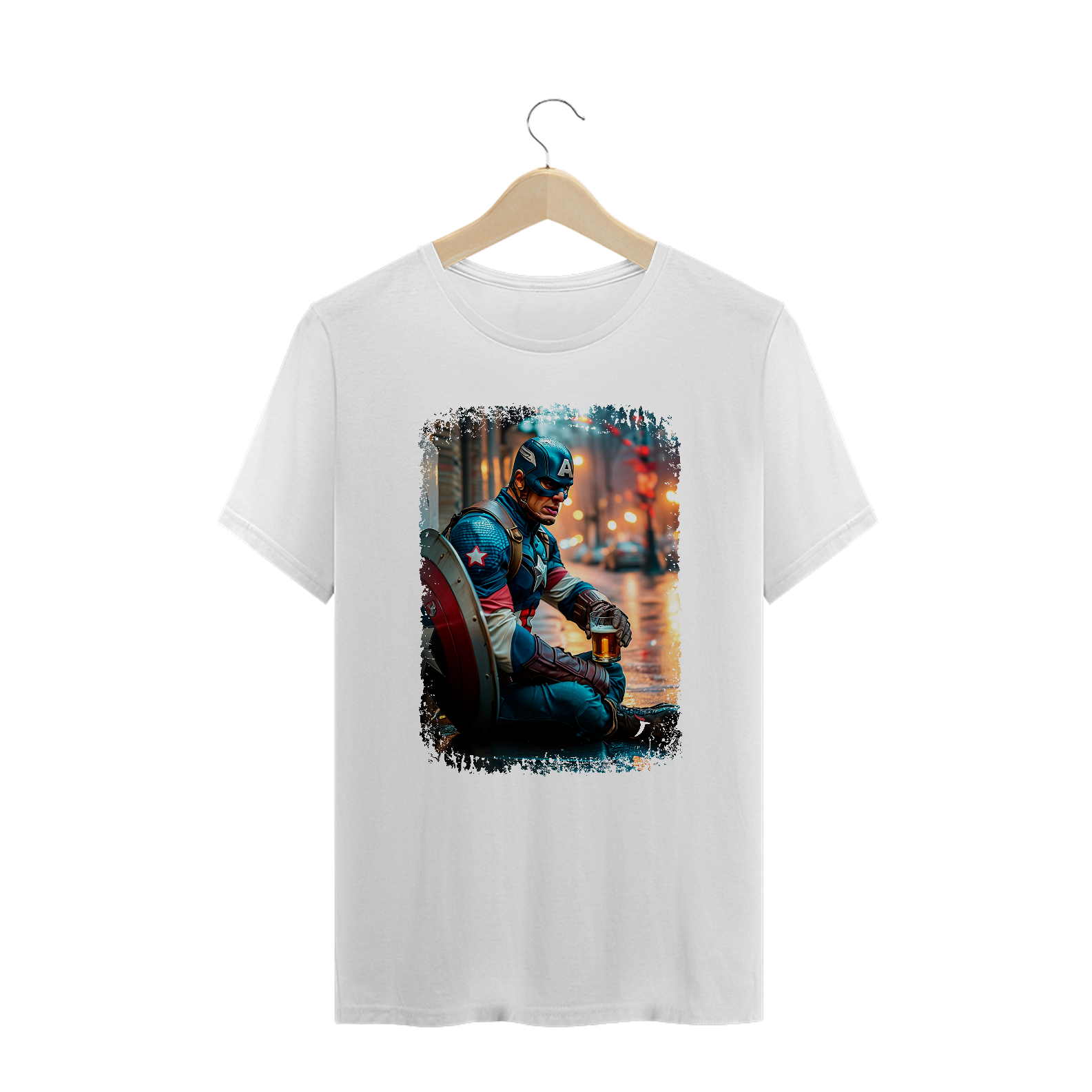 Camiseta Plus Size Capitão América Bebendo Cerveja