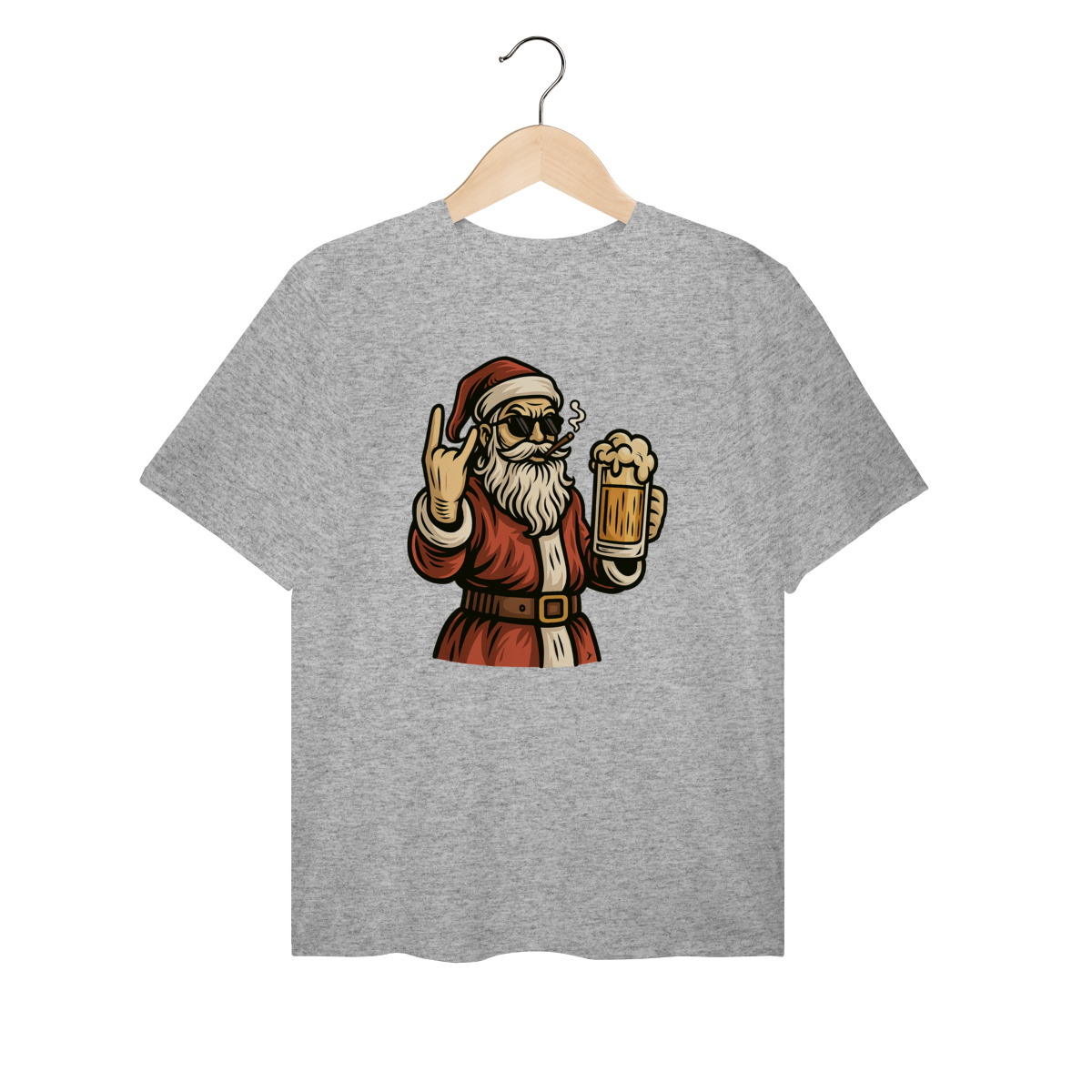 Camiseta Plus Size Natal - Papai Noel Bebendo Cerveja