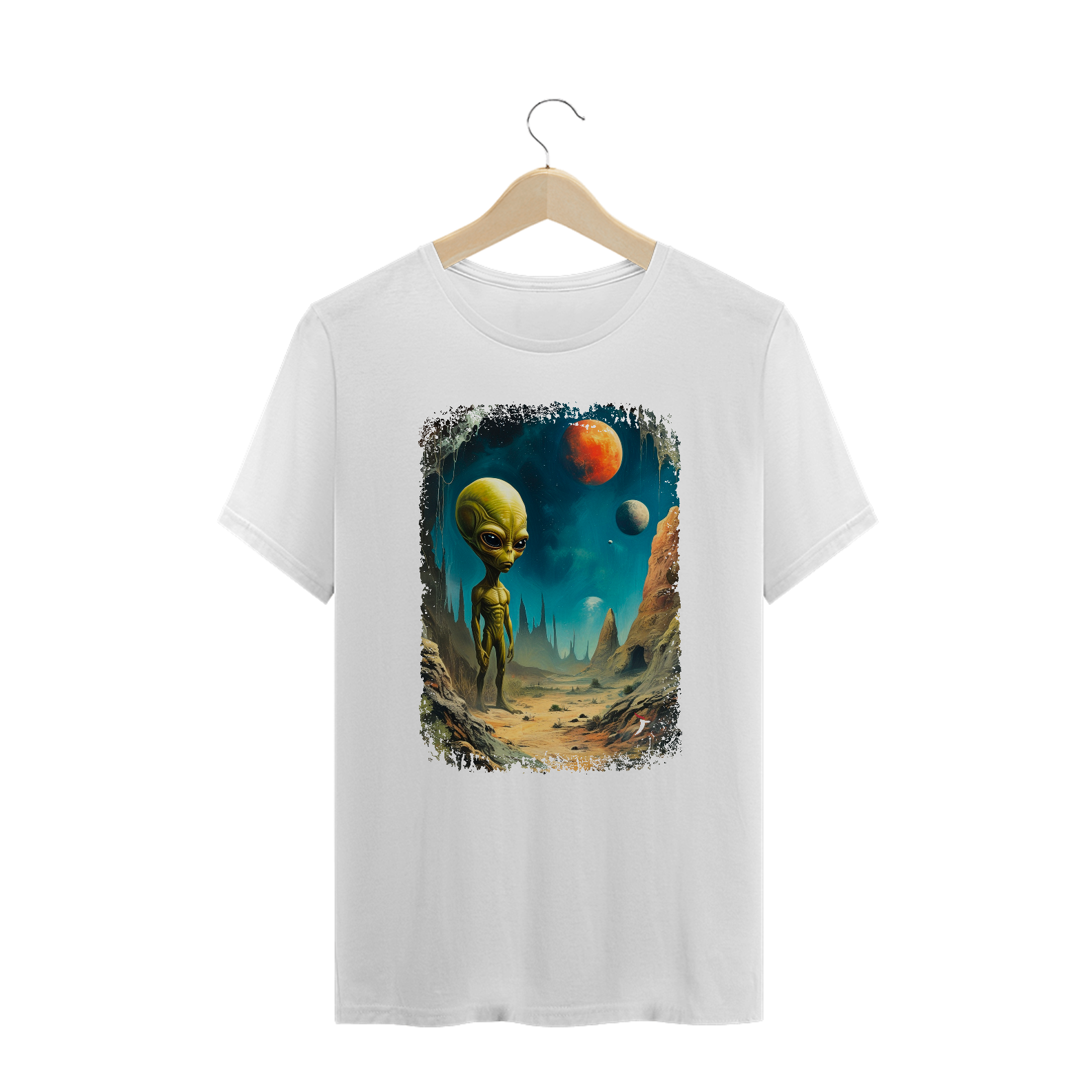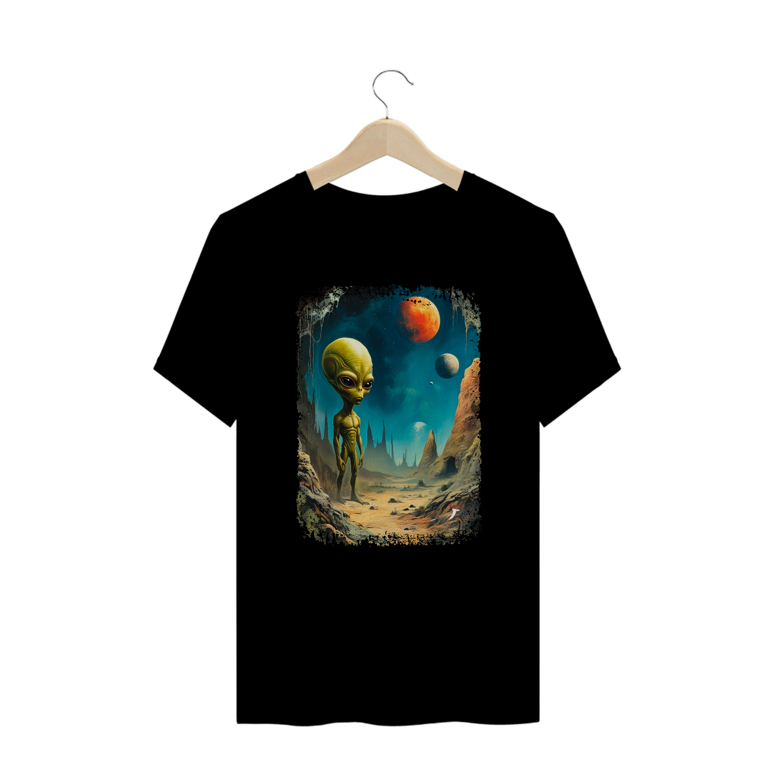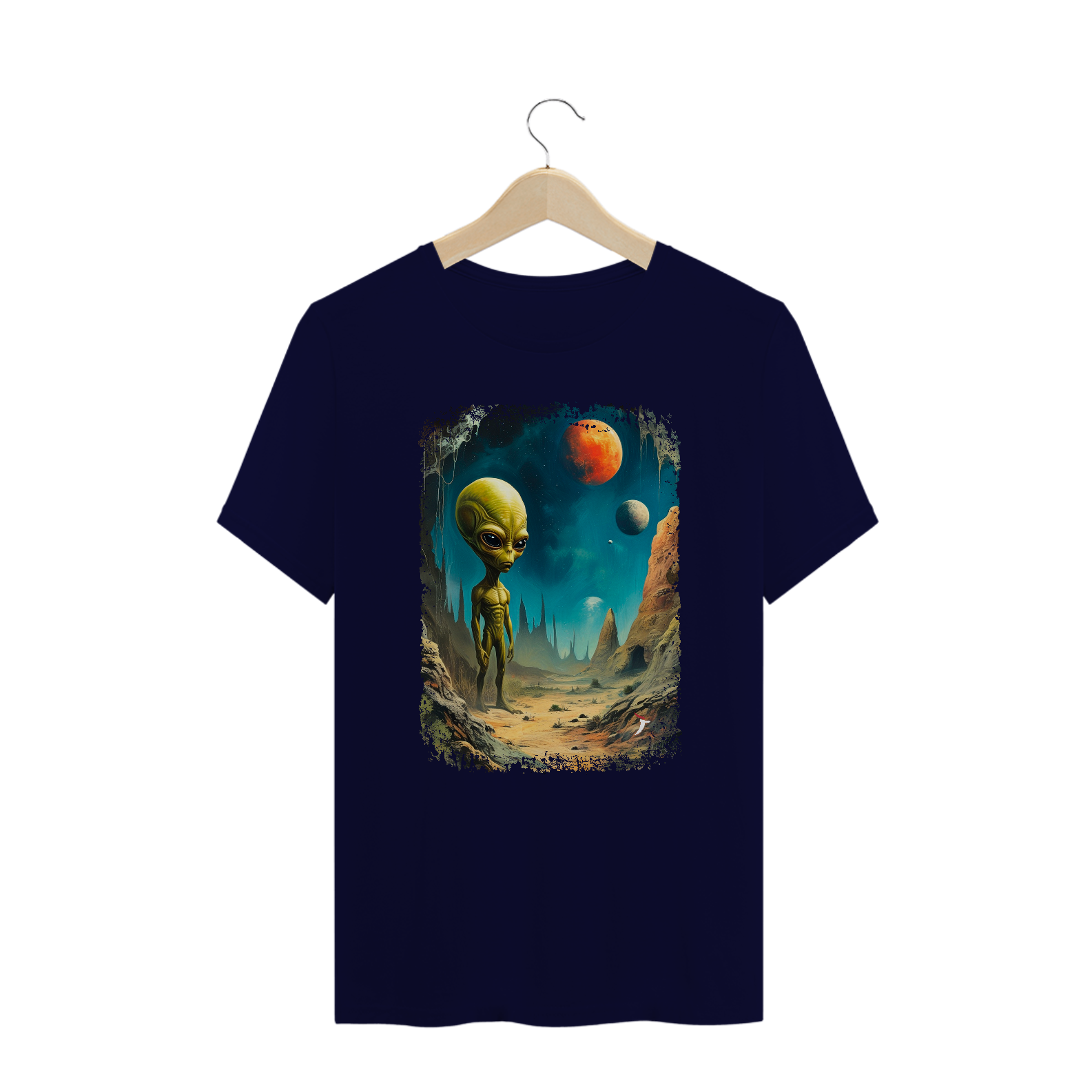 Linda estampa com um alienígena em algum planeta distante da Terra.