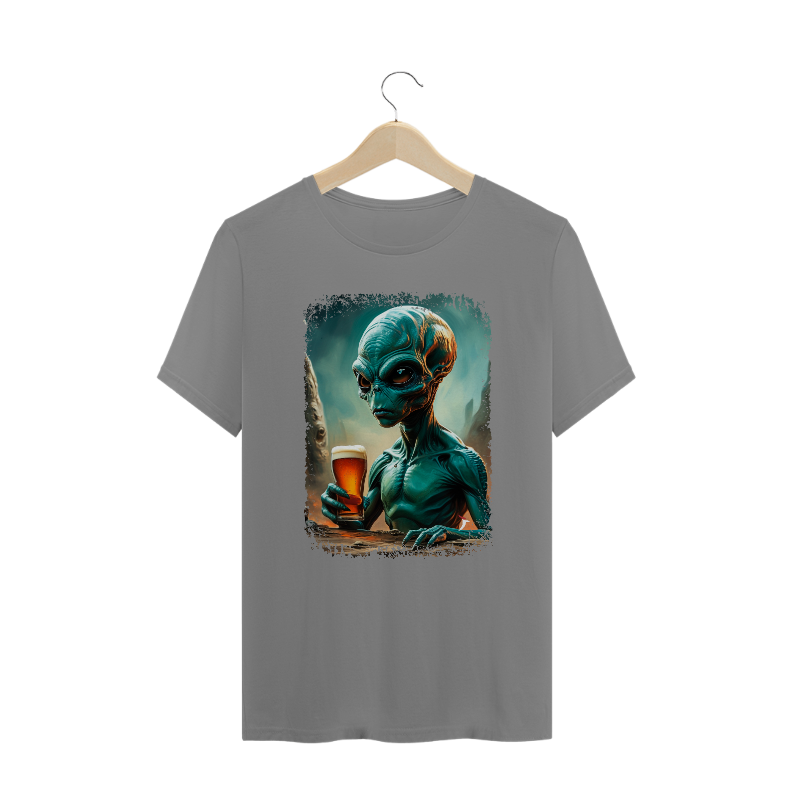 Camiseta Plus Size Ufologia - Alienígena Bebendo Cerveja